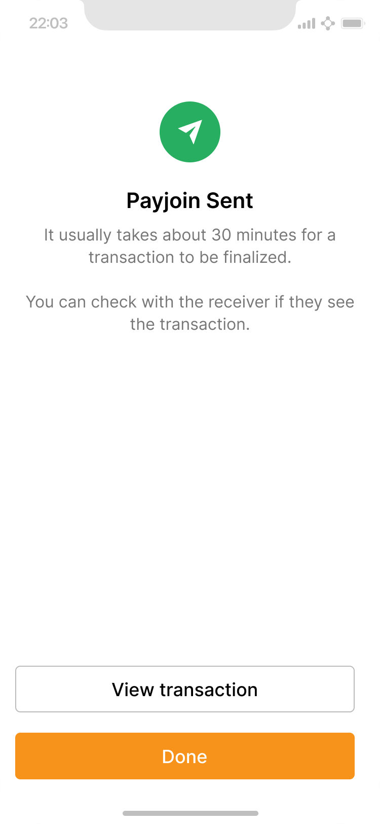 A wallet supporting payjoin presents a screen with payjoin already enabled.