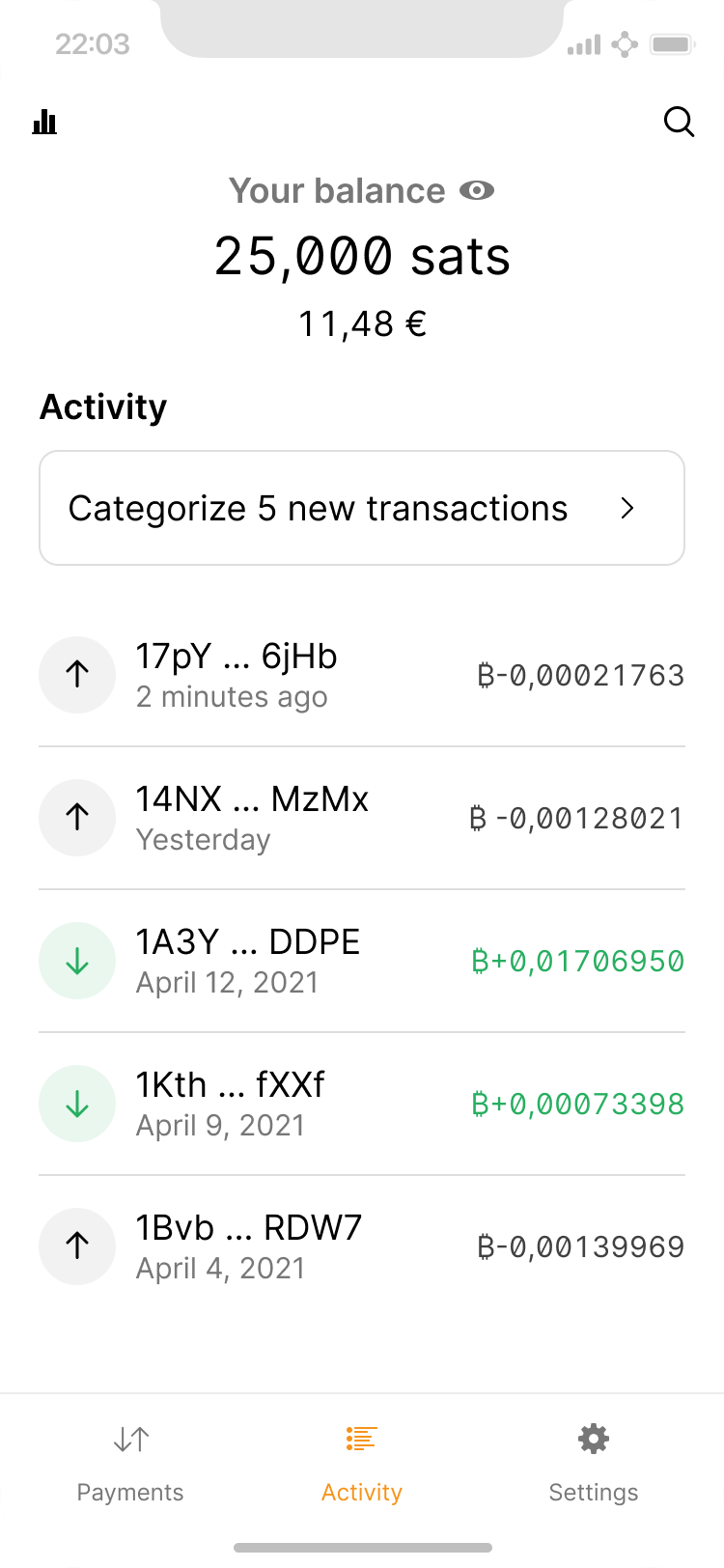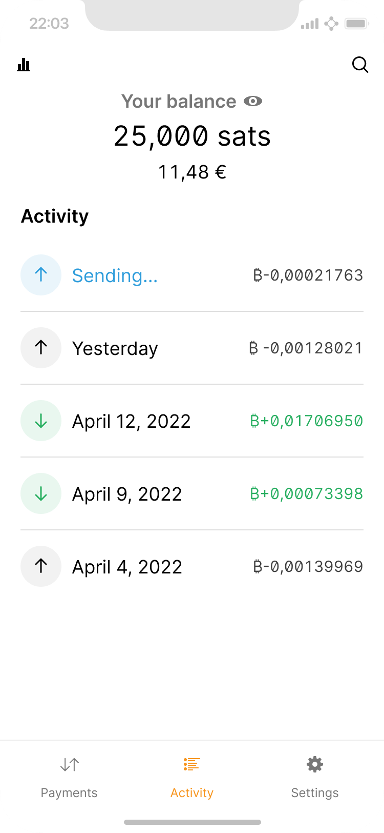 The lightning network makes micropayments economically and technically viable. For example, as a user listens to a podcast, they may stream 10 sats per minute to the host as a thank you. This can easily result in a cluttered activity list, which can be remedied via automatic grouping.