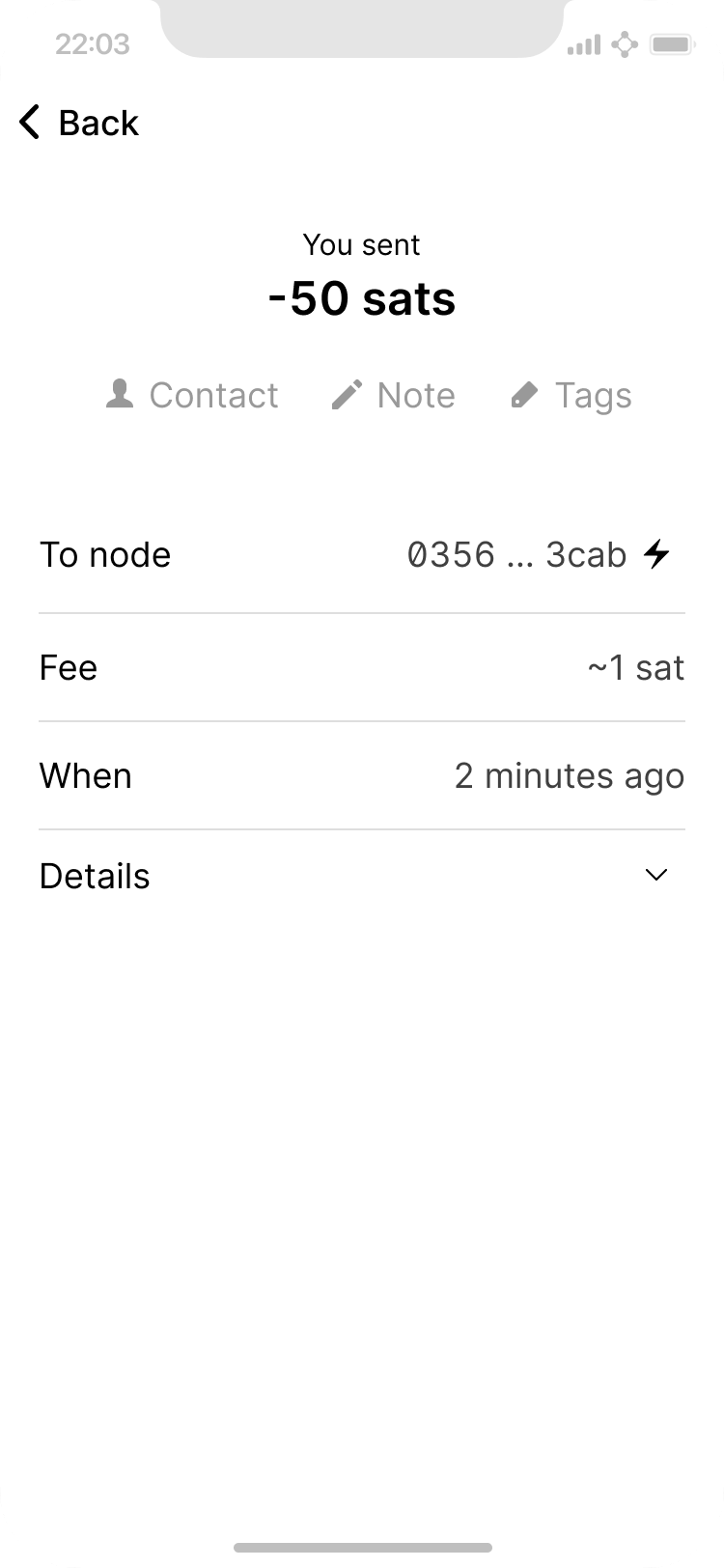 Expanded details of lightning payment.