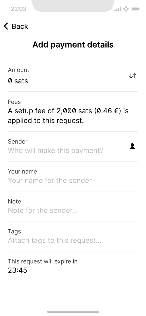 Moreover, users have the option to skip entering an amount. This flexibility caters to situations where the user might want the sender to determine the amount. Zero-amount requests also reduce the exposure of both parties to price volatility. This is because the bitcoin price in fiat terms could fluctuate between the time of the request and the actual sending of payment.