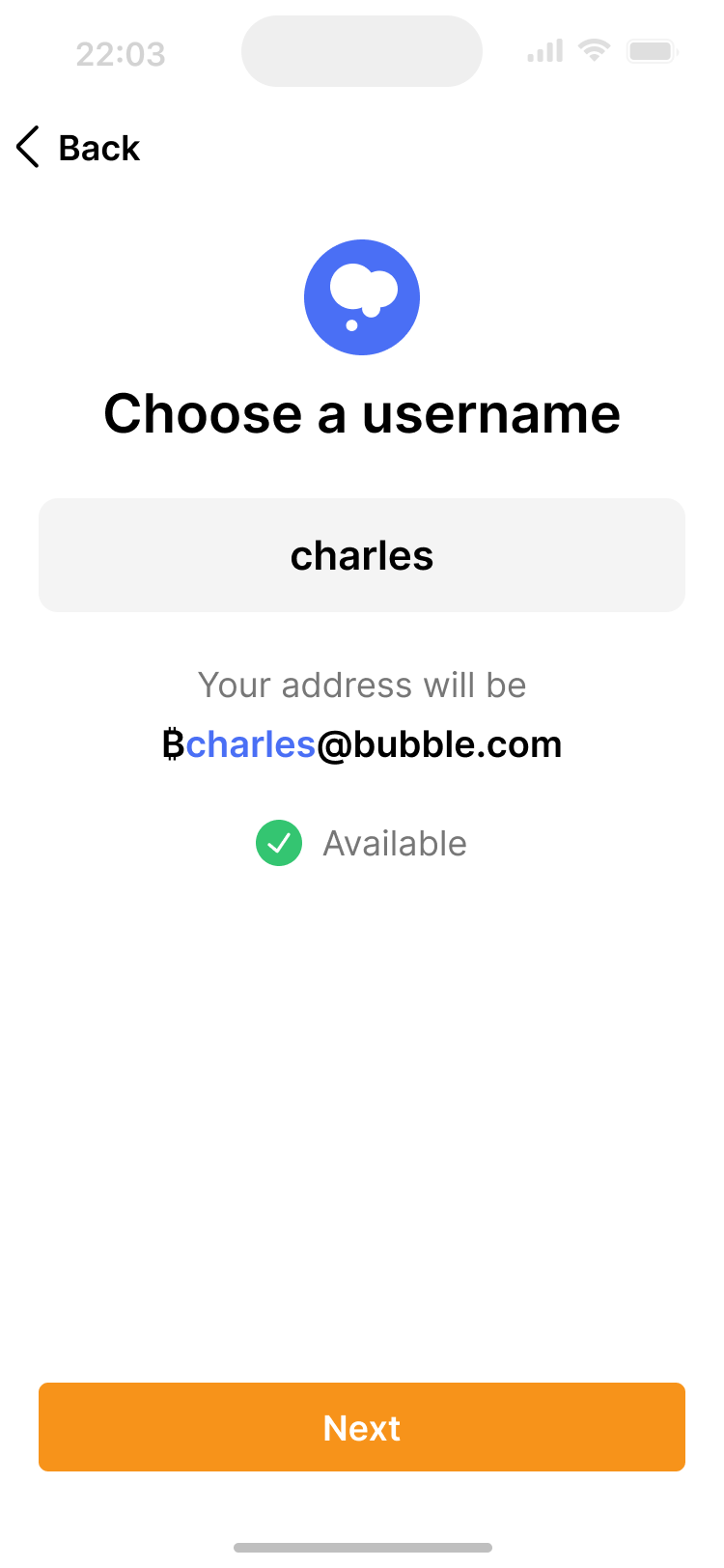 Below is a sample flow, in which a user can define their unique username, which is then combined with the wallet providers domain to form their human-readable address.