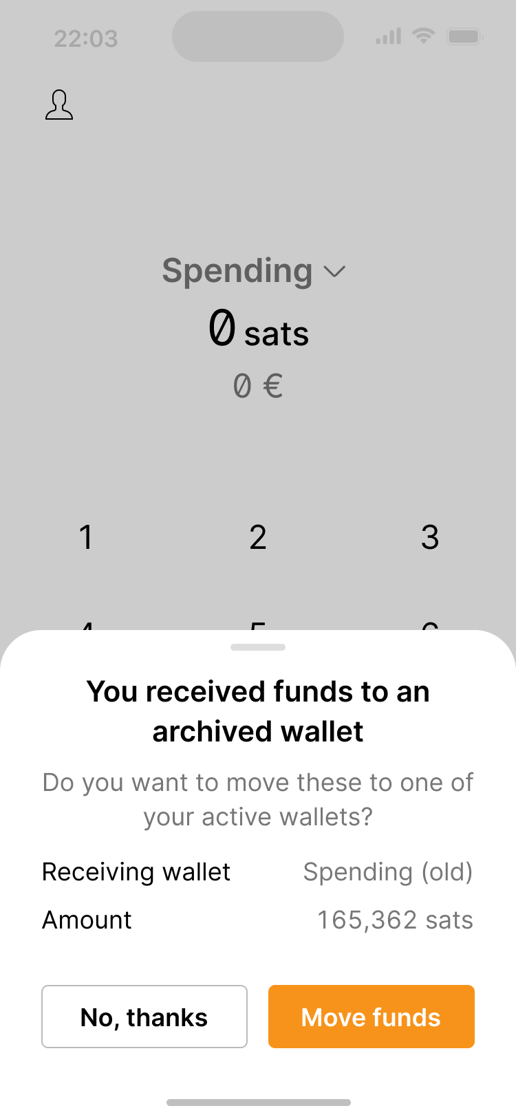 This introduces the need for a wallet archive. Wallets in this archive are tucked away and generally not accessible in the primary user flows. However, the application still looks for incoming transactions and notifies the user accordingly.